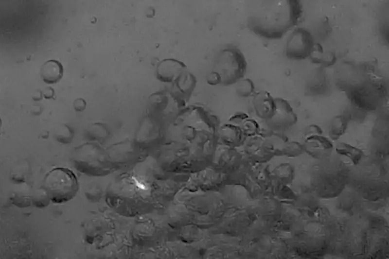 Белое пятно в нижней части этого изображения – это микромолния между пузырьками, содержащих воздух и метан / Фото Yu Xia
