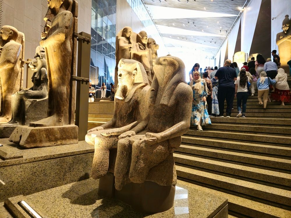 Главной жемчужиной экспозиции станет полная коллекция сокровищ из гробницы Тутанхамона – более 5000 предметов, включая его знаменитую золотую погребальную маску. Впервые с момента открытия гробницы в 1922 году все эти реликвии будут выставлены вместе. В грандиозном атриуме посетителей будет встречать 3200-летняя статуя Рамзеса II.