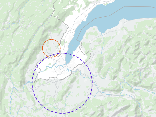 Сравнение размеров двух коллайдеров. Красным обозначено расположение нынешнего, а синим изображена территория прокладки будущего коллайдера / Фото CERN