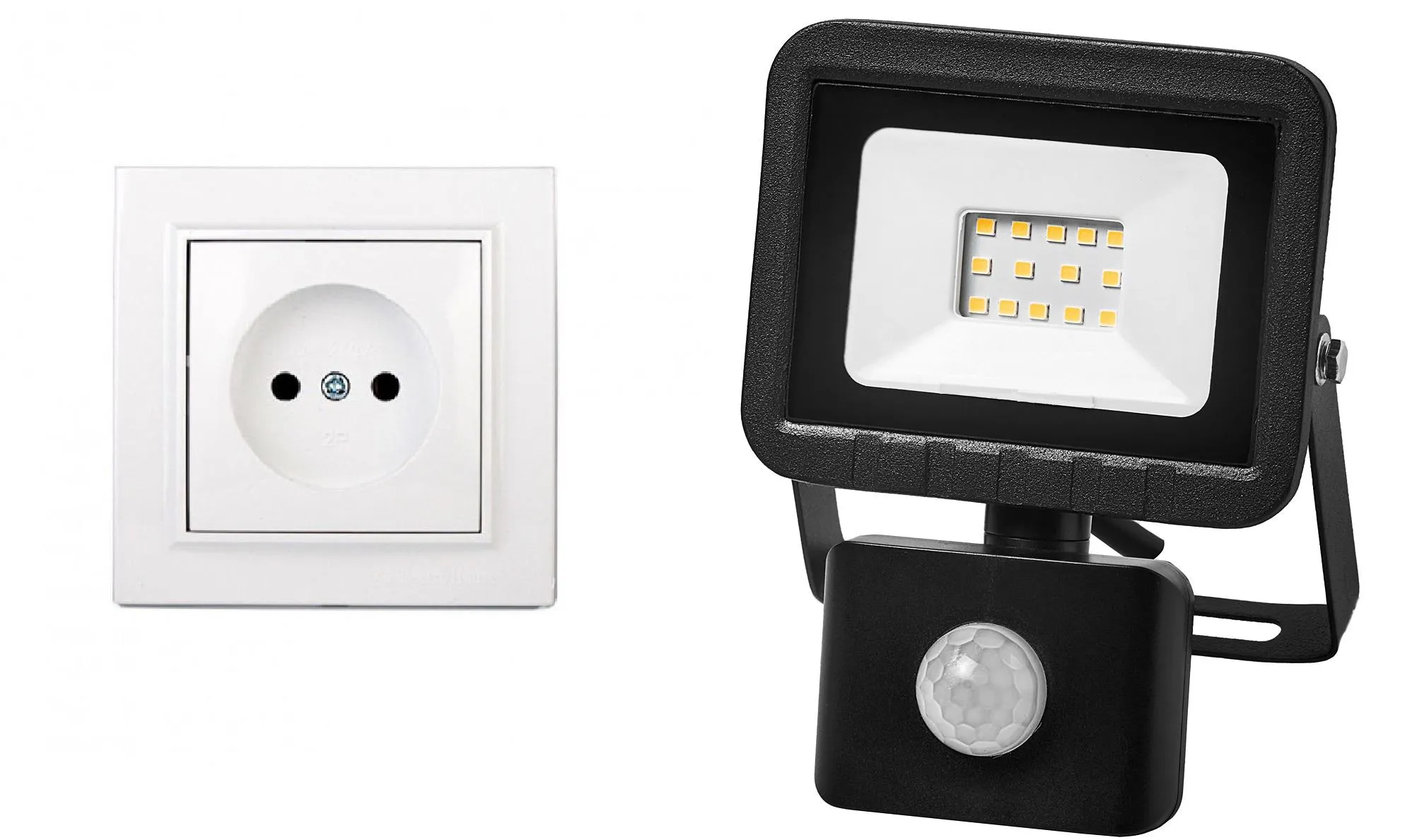 Обычная розетка с защитой IP22 и светодиодная лампа с защитой IP44