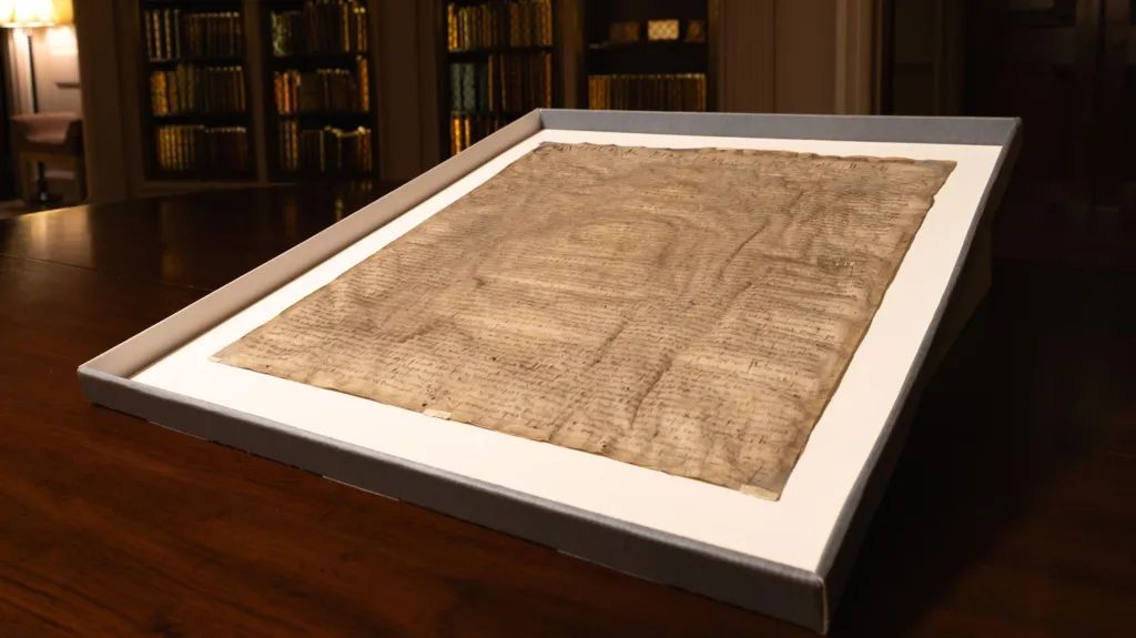 - Документ был идентифицирован как один из шести известных официальных экземпляров 1300 года благодаря анализу почерка и сравнению с другими аутентичными образцами.