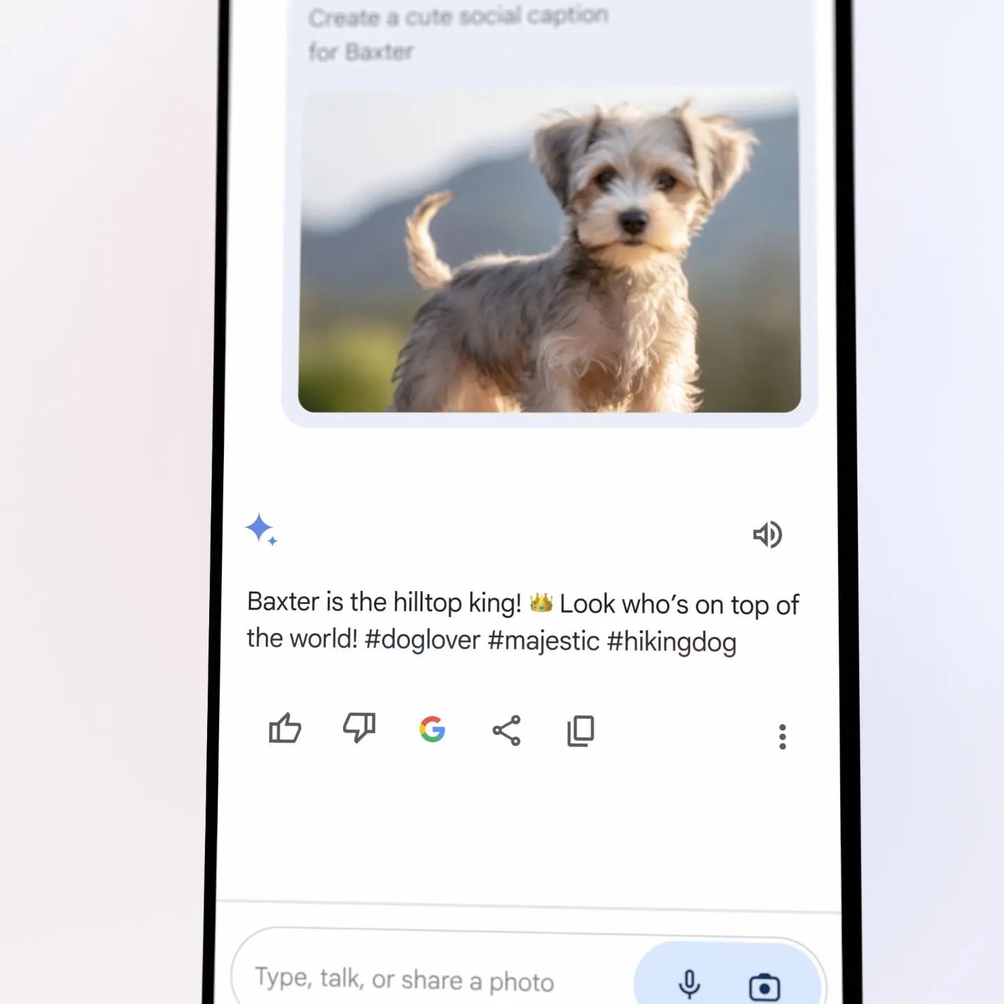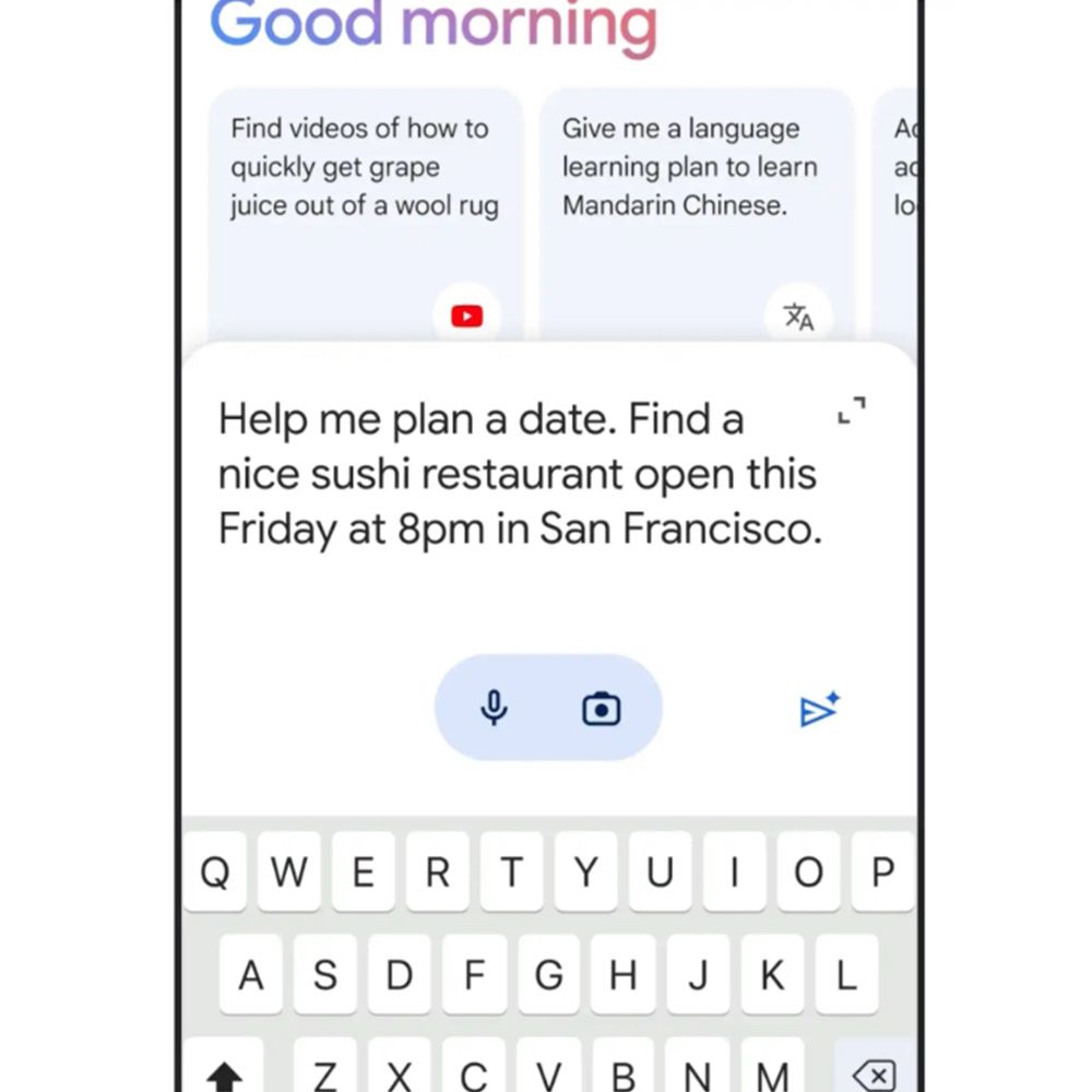 - Снизу так же появляется плавающая панель, которая позволяет вводить текст вручную (как раньше в чат-боте Bard), говорить с ассистентом или добавлять фотографию.