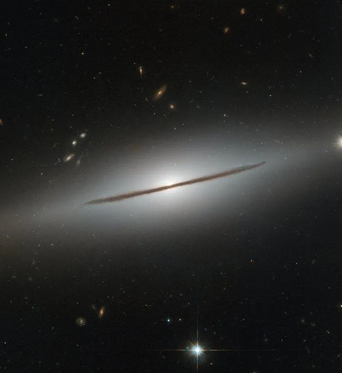 Галактика, которая "лежит на боку", расположена на расстоянии 100 миллионов световых лет от Земли в созвездии Кита. Такой особый вид она имеет из-за особого расположения по отношению к нашей планете.