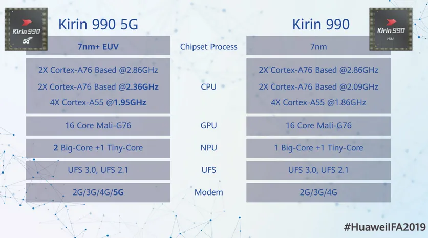 Благодаря использованию передового 7-нм+EUV техпроцесса Kirin 990 5G стал самым компактным в отрасли мобильным процессором с поддержкой 5G. Кроме того, это еще и первый мобильный чип с более чем 10 миллиардами транзисторов.