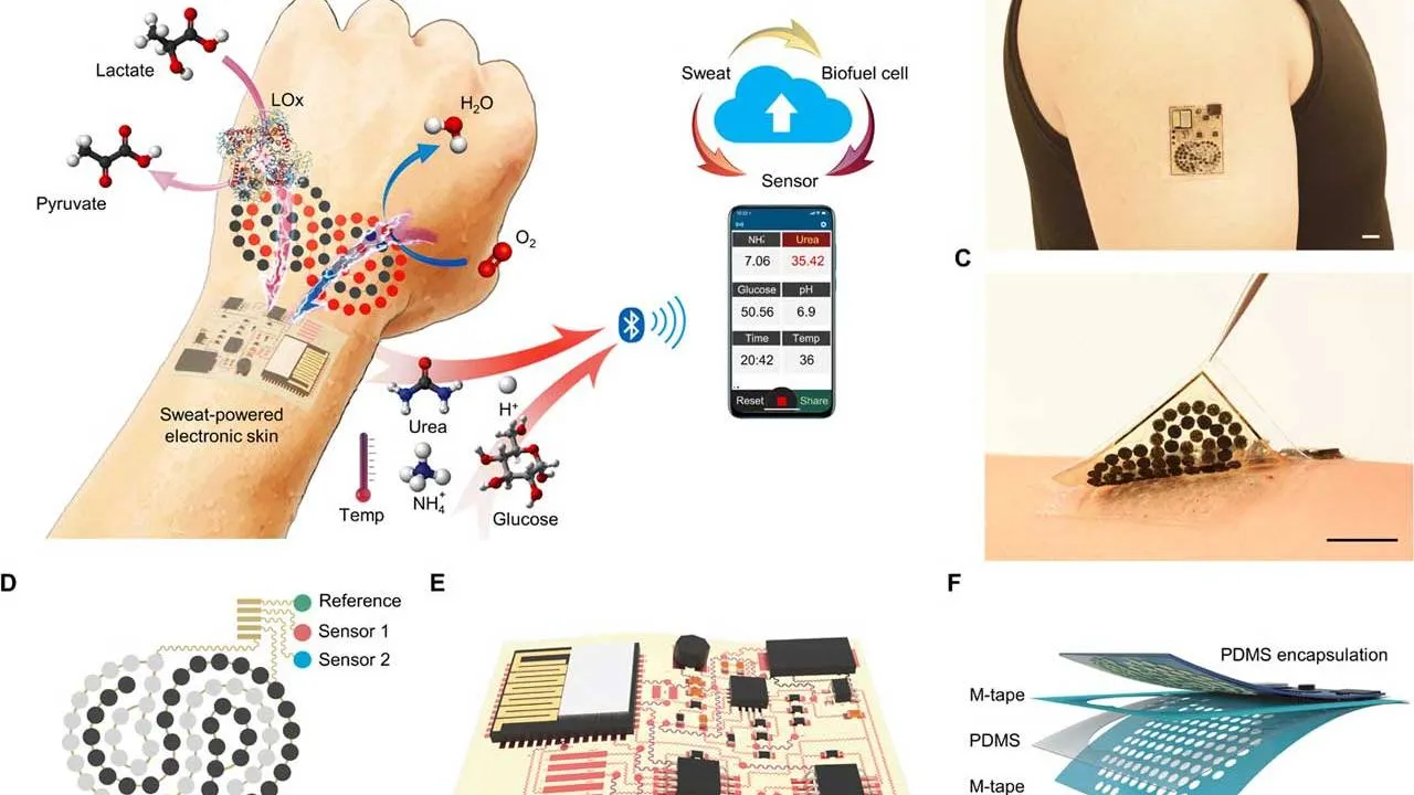 Элементы электронного устройства сделаны с использованием углеродных нанотрубок, пропитанных платиновым или кобальтовым катализатором в композитной сетке, которая содержит фермент, способный расщеплять лактат. Встроенные в электронную кожу топливные элементы будут обеспечивать питание прибора в течение нескольких дней.