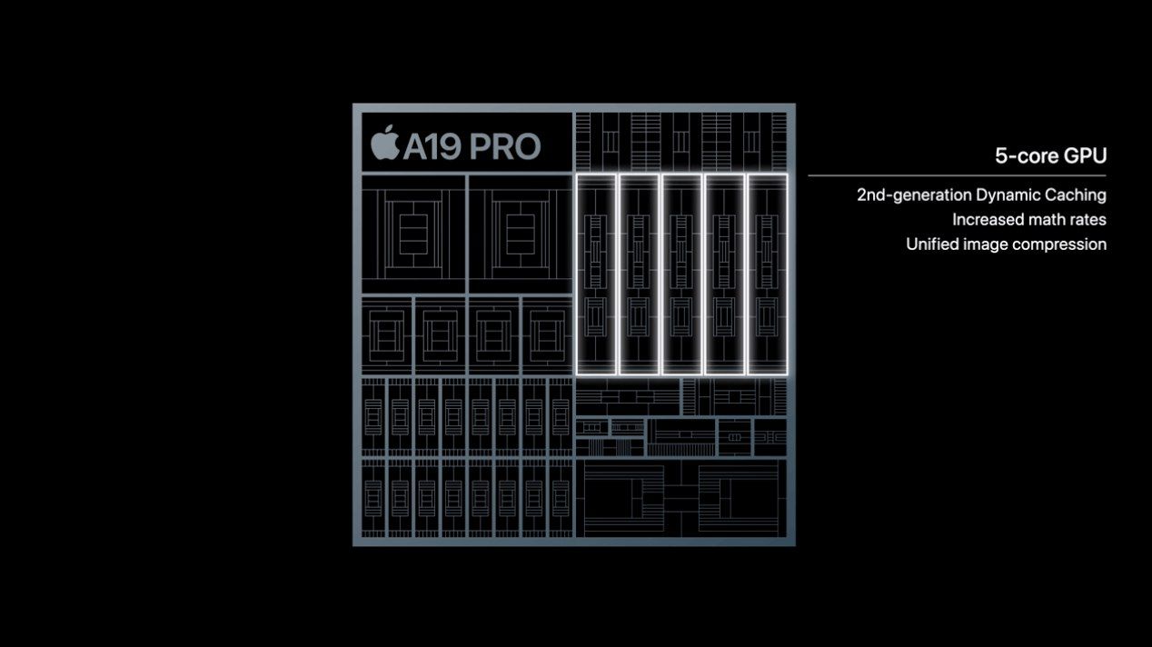Производительность. Устройство работает на чипе A19 Pro, таком же, как и во флагманских моделях, но с одним ограничением – он имеет уменьшенное количество графических ядер. Объем оперативной памяти составляет 12 ГБ. Кроме того, смартфон получил нейронный блок N1, а Apple обещает, что смартфон теперь имеет уровень MacBook Pro.
