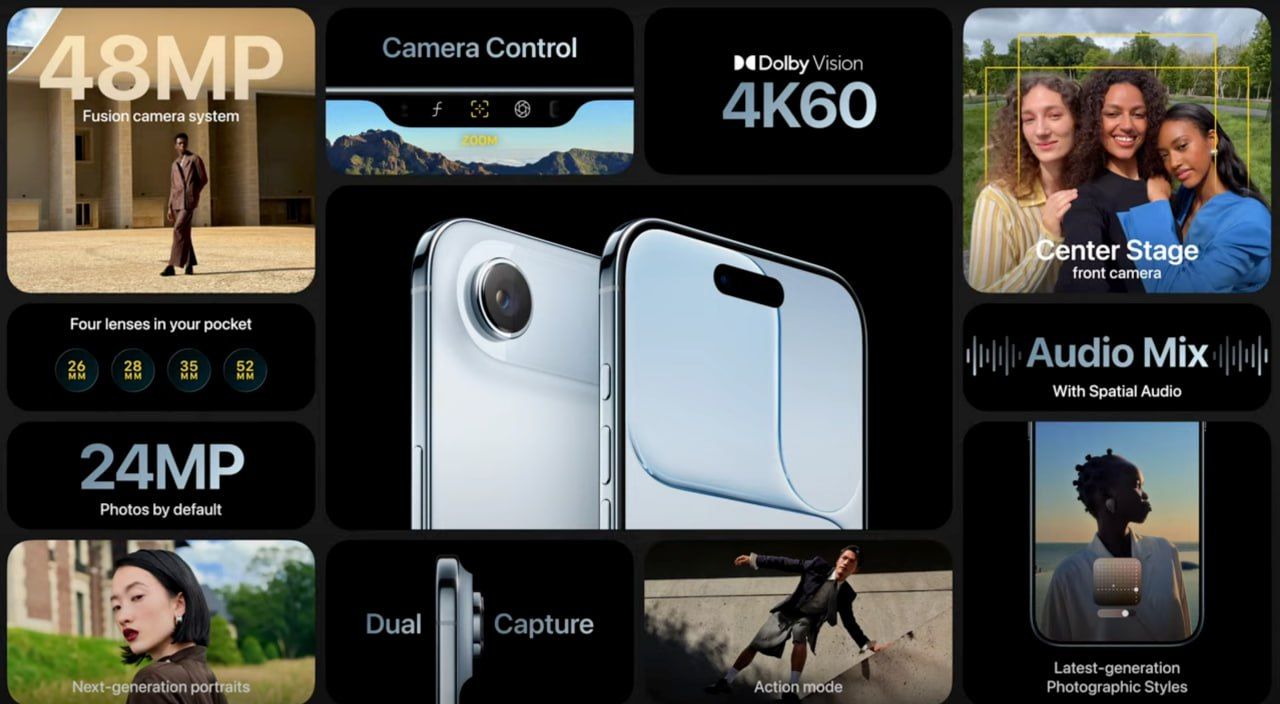 Камеры. Ради тонкого корпуса Apple пошла на компромисс в системе камер. Смартфон имеет только одну основную камеру на задней панели, без ультраширокоугольного или телефото объективов. Фронтальная камера получила обновленный 24-мегапиксельный сенсор.