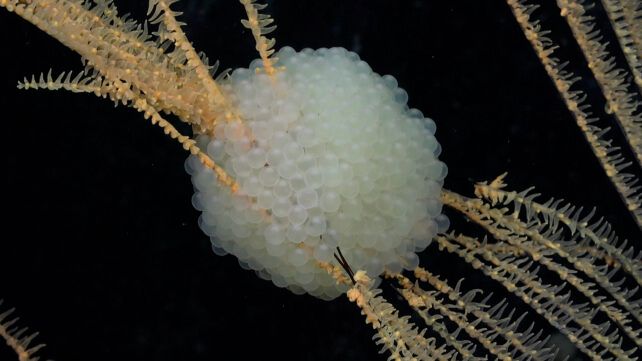 Яйца рыбы-улитки на коралле / Фото ROV SuBastian/Schmidt Ocean Institute