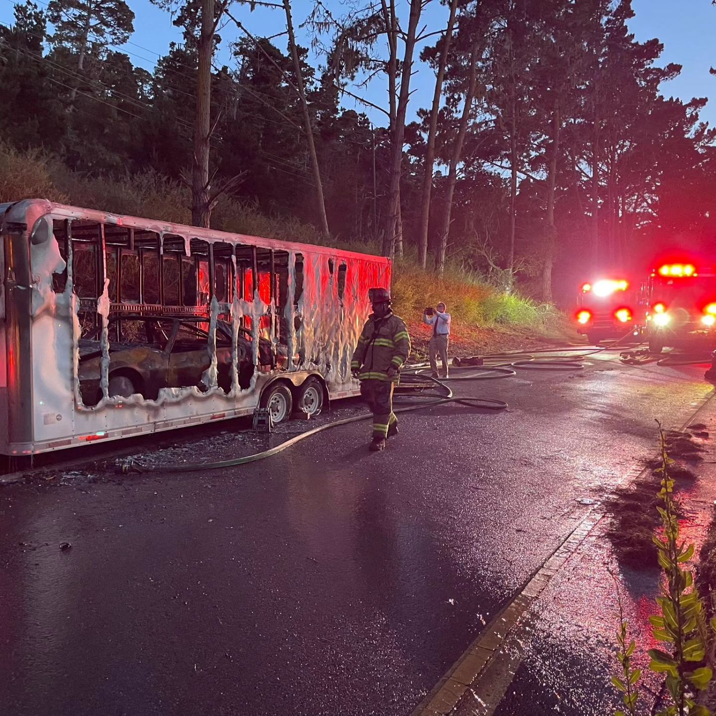 Хотя нет никаких подробностей о том, что именно произошло или что вызвало пожар, в сообщении говорится о том, что действия водителя помогли предотвратить распространение огня на окружающие леса.