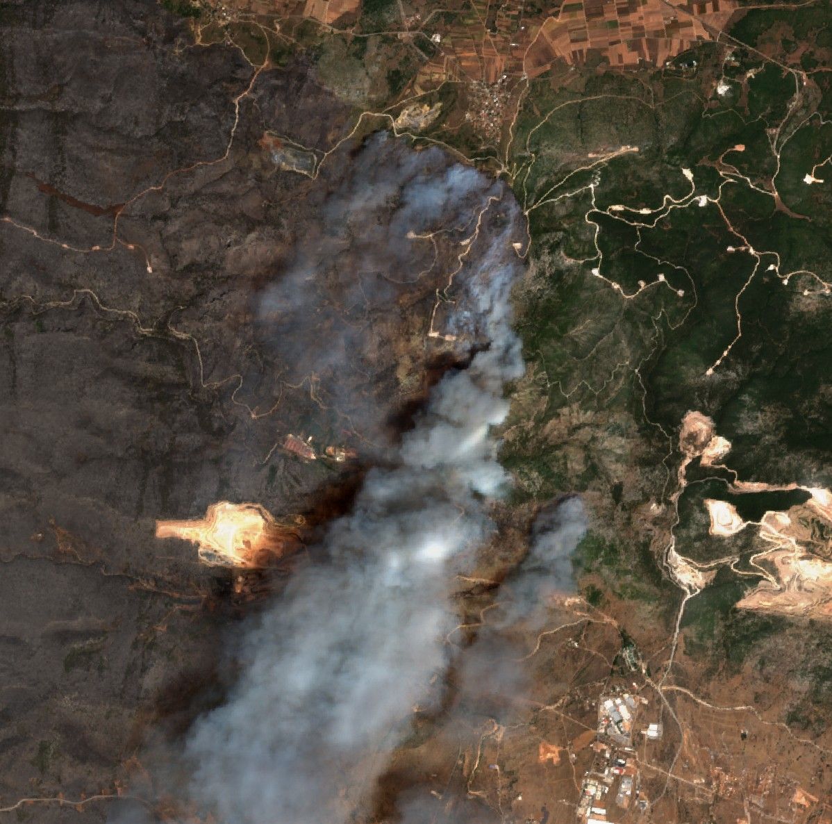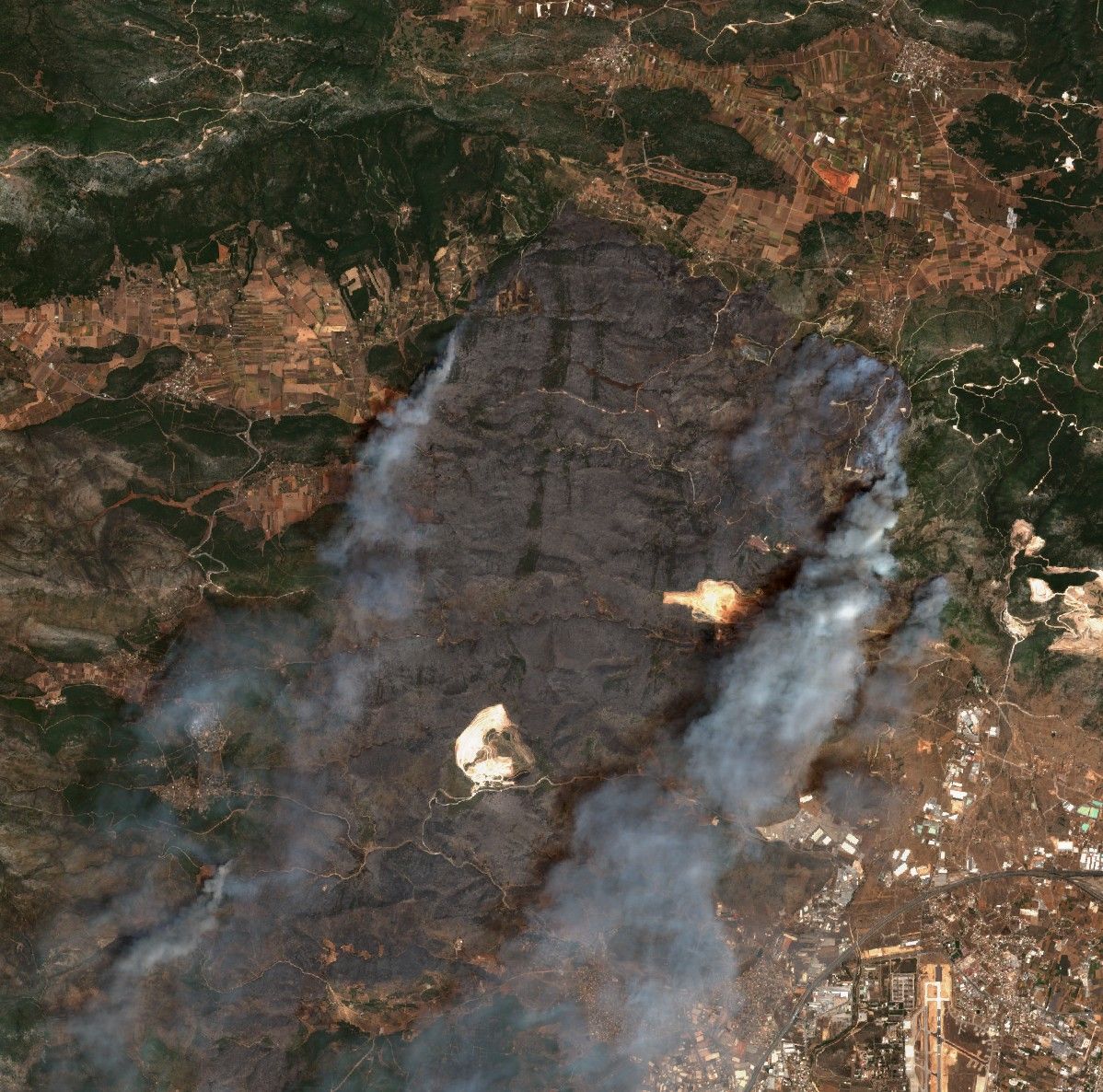 Фото пожаров на Родосе сделано службой картографирования "Коперник" / Фото ESA