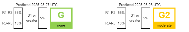 Как рассказал исследователь Юре Атанацков на своей странице в X, модель NASA WSA-ENLIL показывает, что касательный удар возможен 8 августа примерно в 9:00 по киевскому времени (с погрешностью ±8 часов).