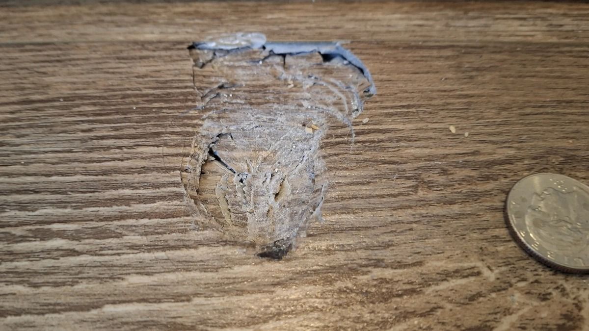 След метеорита на полу дома / Фото опубликовано Университетом Джорджии