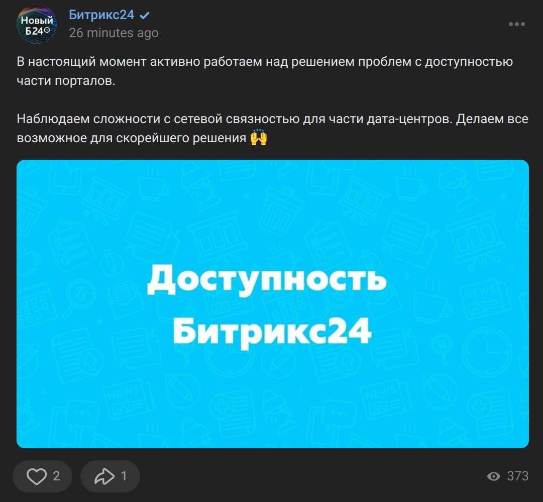 Киберактивисты заявили, что Битрикс24 остановил работу в эту среду.