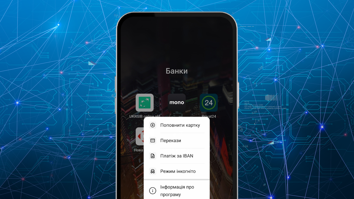 Ярлыки программ – это контекстные ссылки, которые открывают приложение сразу в определенном меню или режиме. Например, задержав палец на иконке monobank, можно получить ярлык для быстрого перехода на конкретную карту, если у вас их несколько.