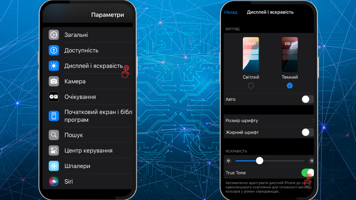 Чтобы отключить эту функцию, перейдите в "Параметры" > "Дисплей и яркость" и деактивируйте переключатель "True Tone" в разделе яркости. Комбинация отключенной автояркости и True Tone обычно решает проблему с неожиданным затемнением.