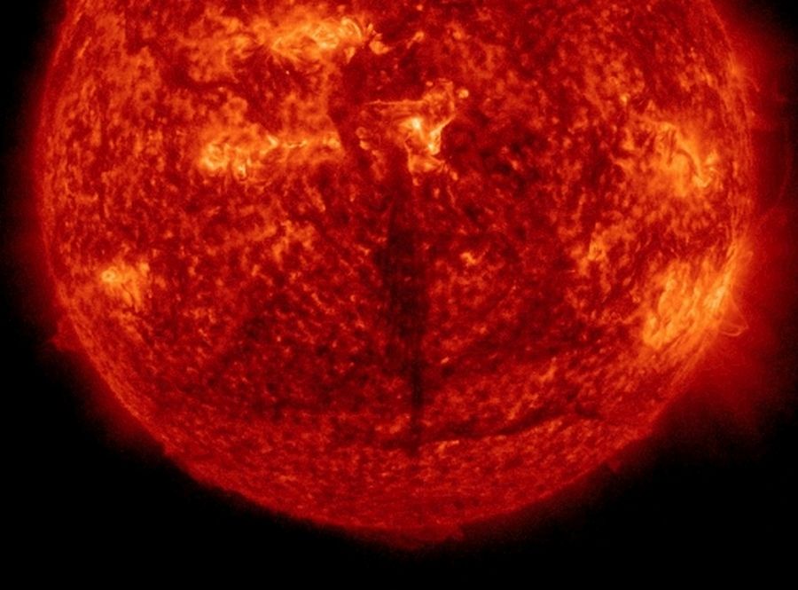 Судя по всему, причиной является одна из корональных дыр, которые открылись на Солнце недалеко друг от друга, или обе сразу.