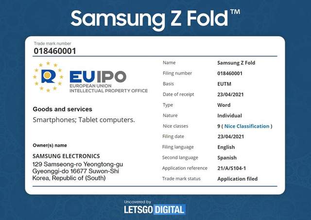 Зарегистрированная в Европе марка Galaxy Z Fold может быть использована для смартфонов и планшетов. Поэтому именно для планшетов, по мнению источников, Samsung резервирует название.