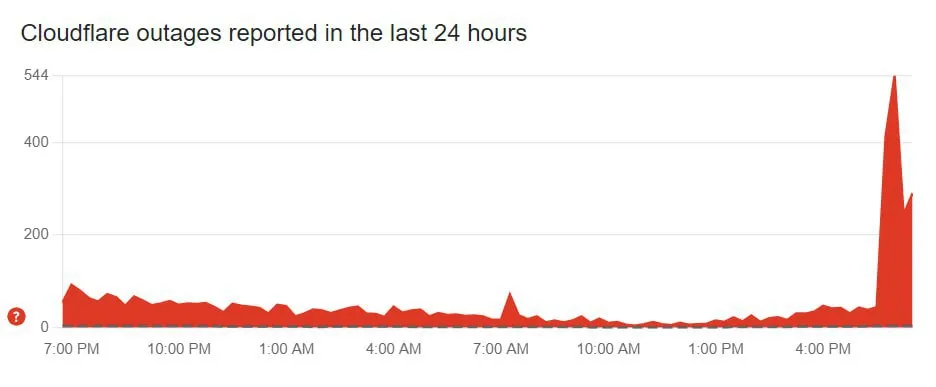 В работе Cloudflare снова произошел сбой / Графика Downdetector