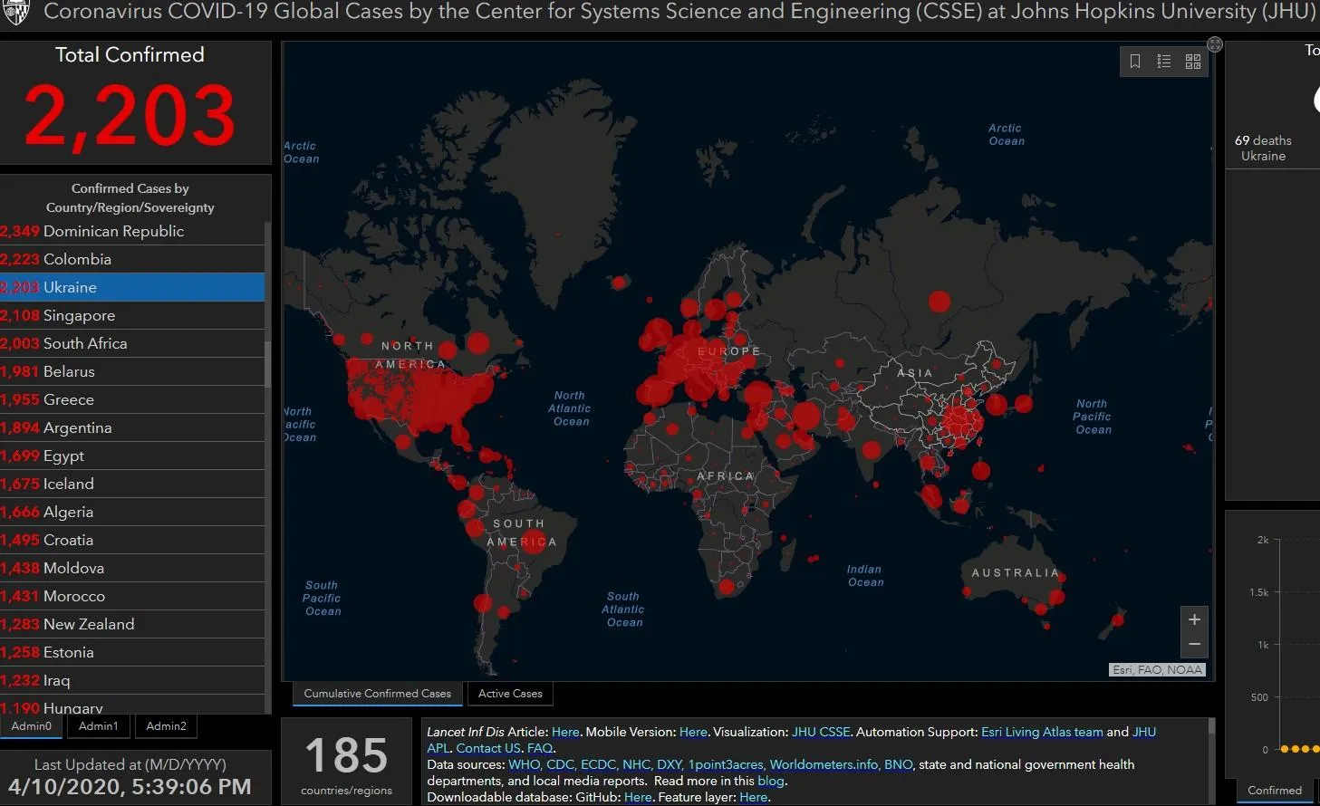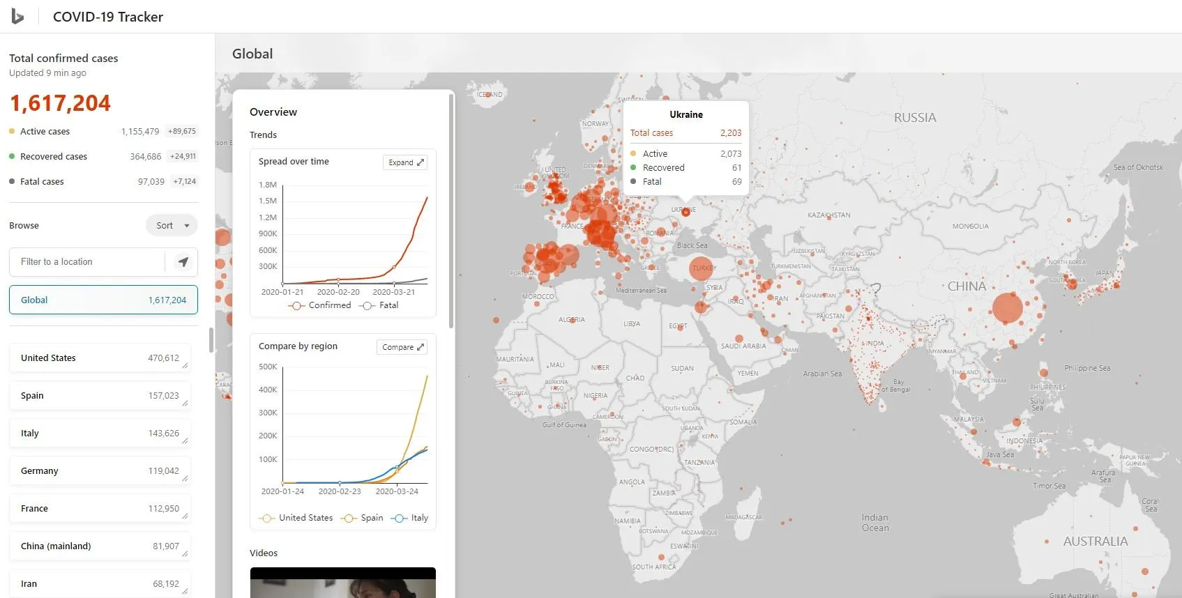 Ресурс размещен на домене фирменной поисковой системы корпорации Bing. Здесь можно увидеть онлайн карту распространения вируса COVID-19 и последние данные о количестве инфицированных.