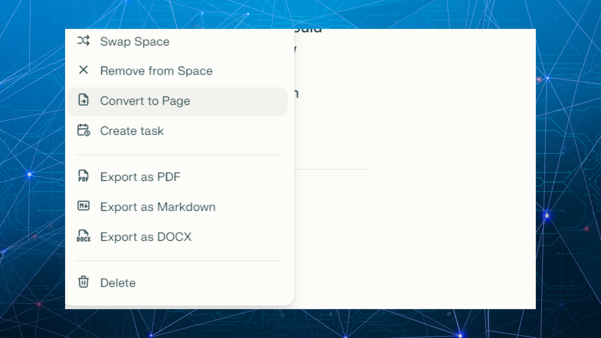 Для этого нужно открыть нужную ветку обсуждения, нажать на меню с тремя точками и выбрать Convert to page (Конвертировать в страницу). Perplexity автоматически сгенерирует документ, который можно дополнить изображениями, отредактировать и опубликовать.