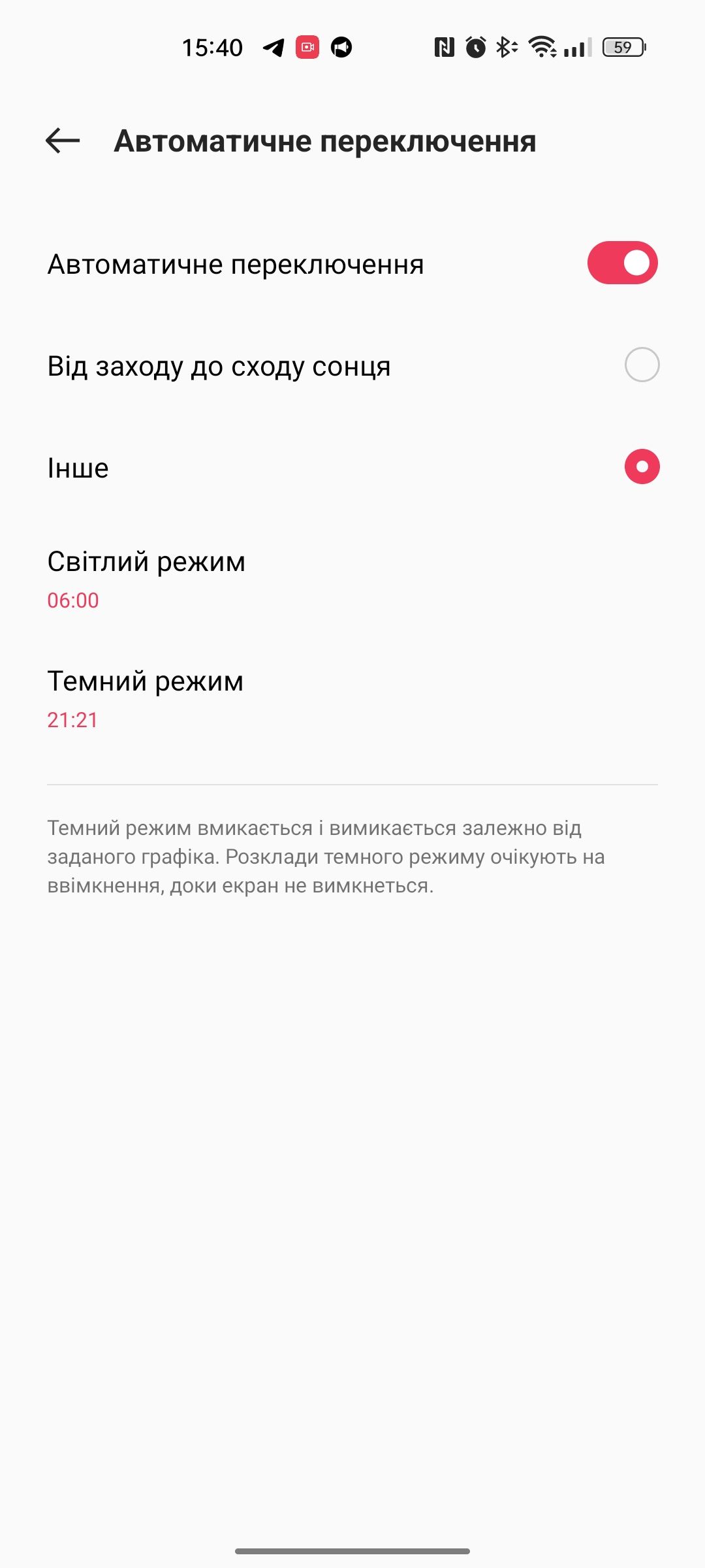 Для этого вам нужно свайпнуть с верхнего края экрана, чтобы открыть меню быстрых действий. Найдите там "Темный режим", который обозначен иконкой солнца, нажмите на нее и держите секунду. Откроется меню настройки этой функции, где вы сможете установить время автоматического переключения на "Темный режим" и возврата к "Светлому режиму".