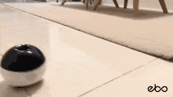 Робот Ebo – небольшой шар, который способен перемещаться по дому, имитируя привычки животного. Устройство издает разнообразные звуки, а также изображает различные эмоции с помощью "глаз" на LED-дисплее.
