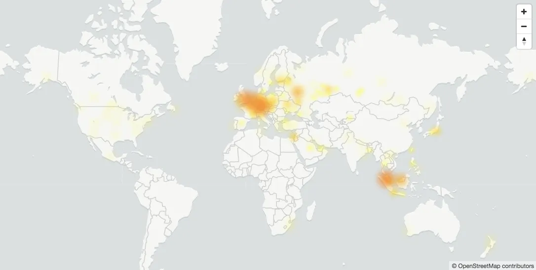 Как видим на карте сервиса Downdetector, проблемы с доступом возникли у пользователей в Европе, странах СНГ, Азии и Австралии. В меньшей степени проблемы затронули игроков из Америки. Что касается Украины, то самое сложное было пользователям из Киева.