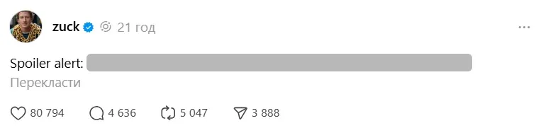 Так будут выглядеть спойлеры в Threads / Скриншот 24 Канала