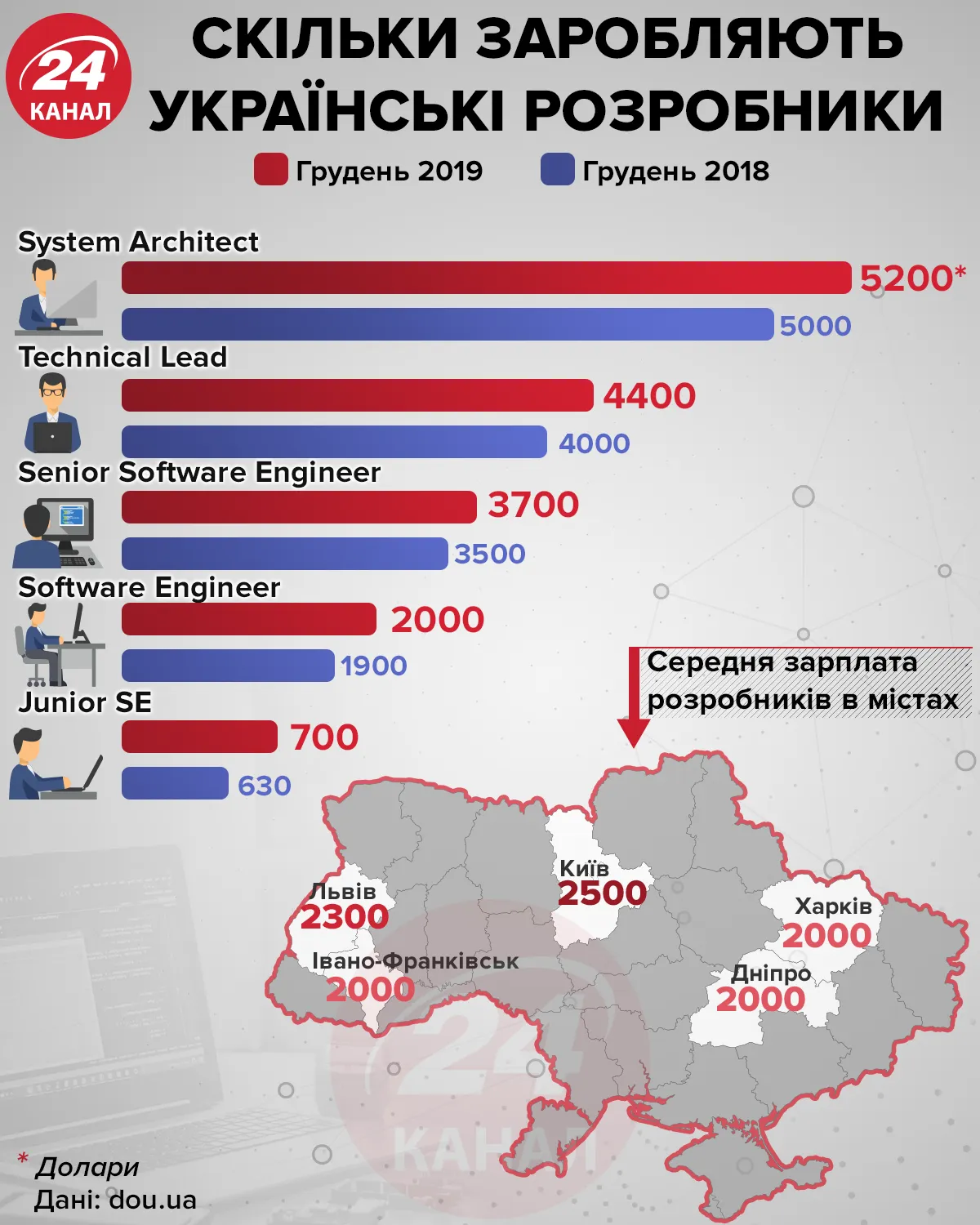 Больше стали зарабатывать и Software Engineers. Да, зарплата Senior программиста за год выросла на 200 долларов – в декабре 2019 года представители этой профессии зарабатывали 3700 долларов.