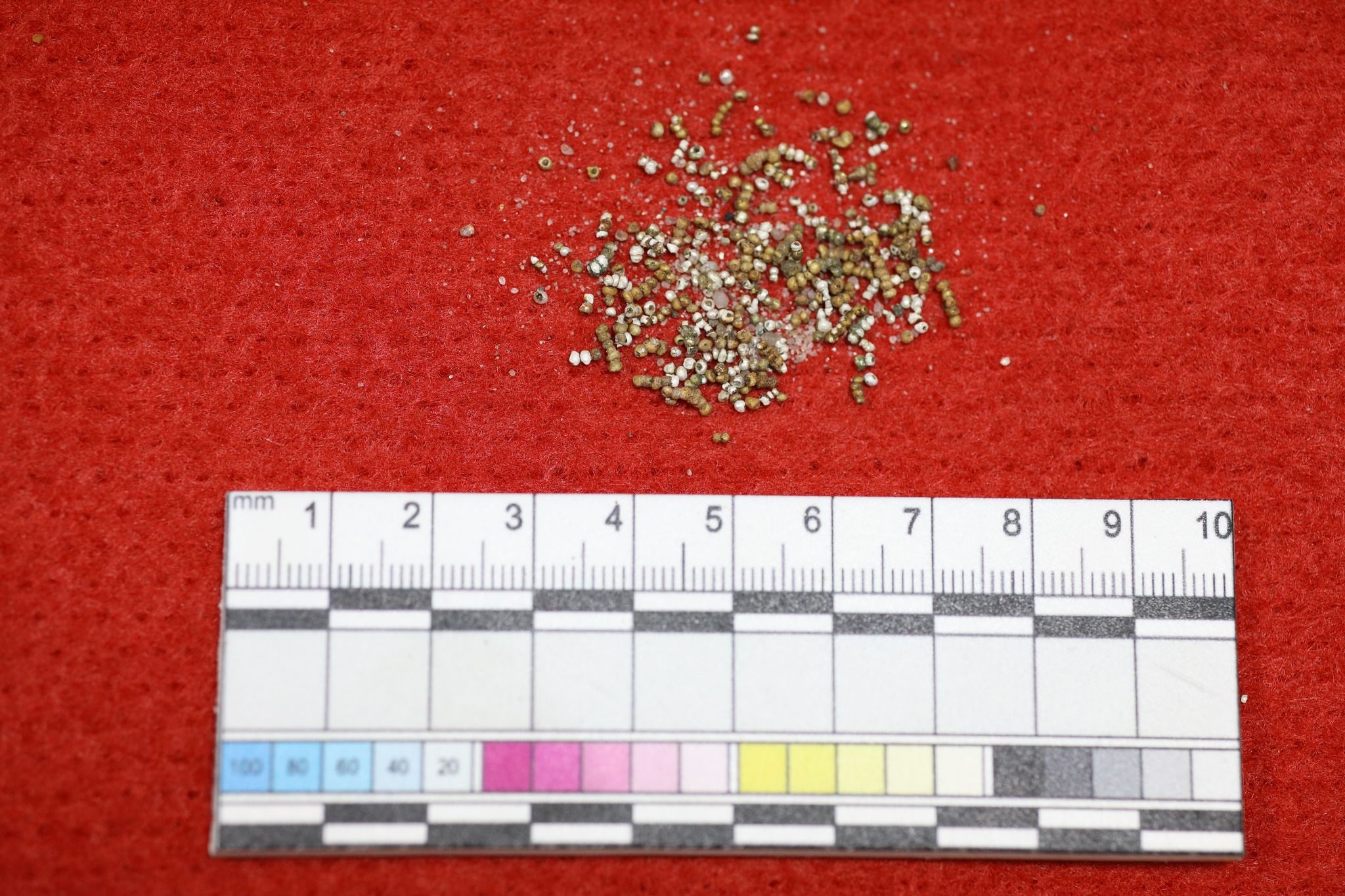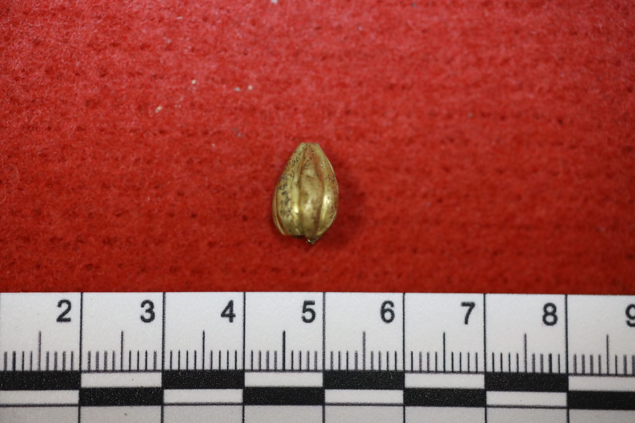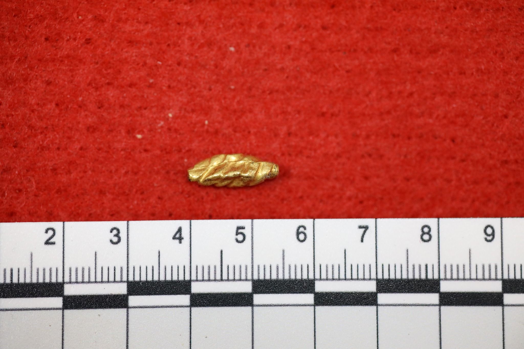 Всего коллекция состоит из 12 золотых предметов общим весом около 28 граммов и перламутрового бисера. Их нашли спрятанными в небольшом керамическом сосуде.
