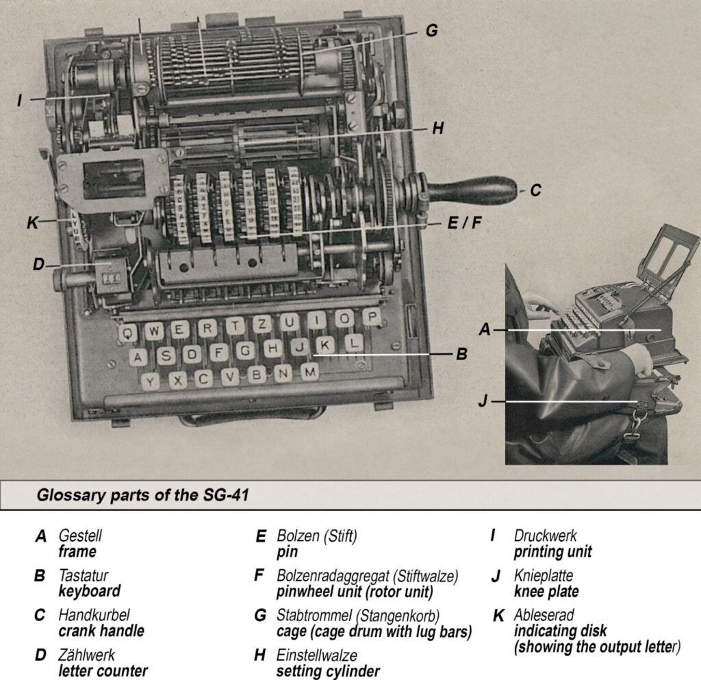 - SG-41 використовував механічний принцип штифтів і кулачків, мав складну систему ключів та був оснащений інноваційними механізмами, роблячи його коди майже невловимими.