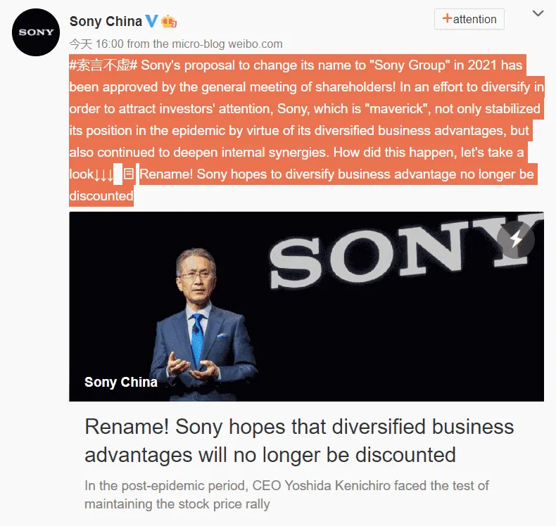 Про зміну назви компанії повідомив китайський підрозділ Sony на своїй сторінці у соцмережі Weibo.