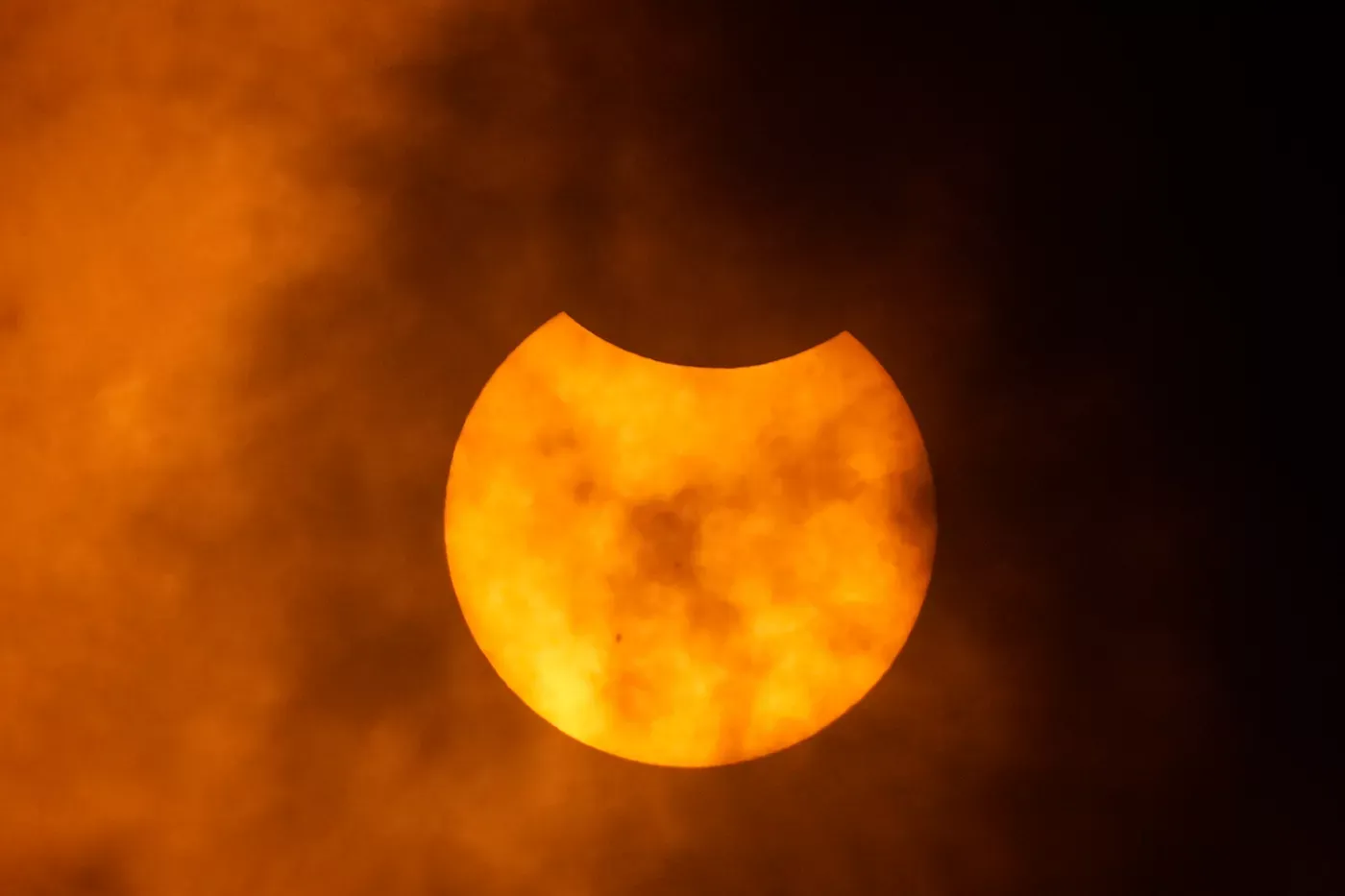 Спочатку потемніло небо, потім тіні у формі півмісяця, і, нарешті, вибух вітань натовпів,