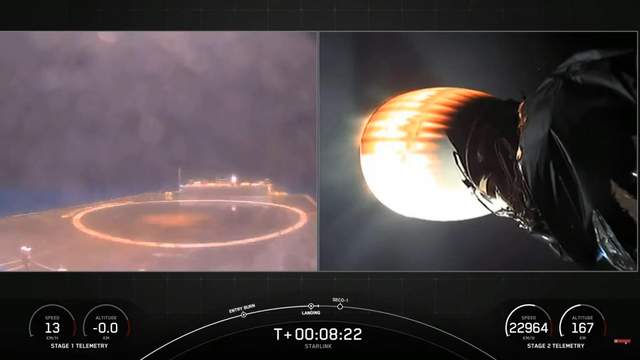 Старт та момент посадки на платформу першого ступеня ракети / Скріншот 24 канал