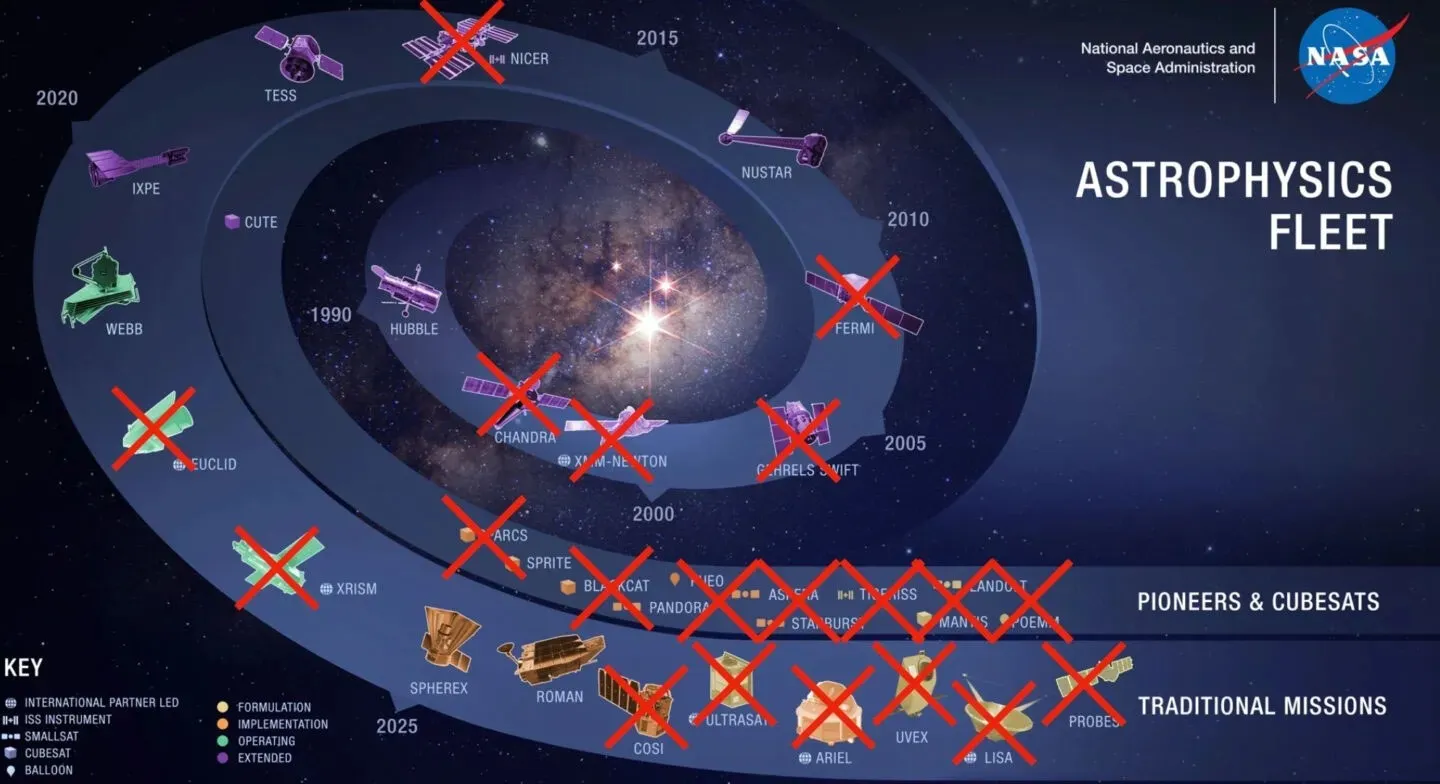 Під удар також потрапило чимало місій NASA, як от проєкт з повернення зразків з Марса. Також під скорочення потрапило фінансування астрофізики та наук про Землю. Навіть успішні місії, як Juno та New Horizons, потрапляють під загрозу припинення.