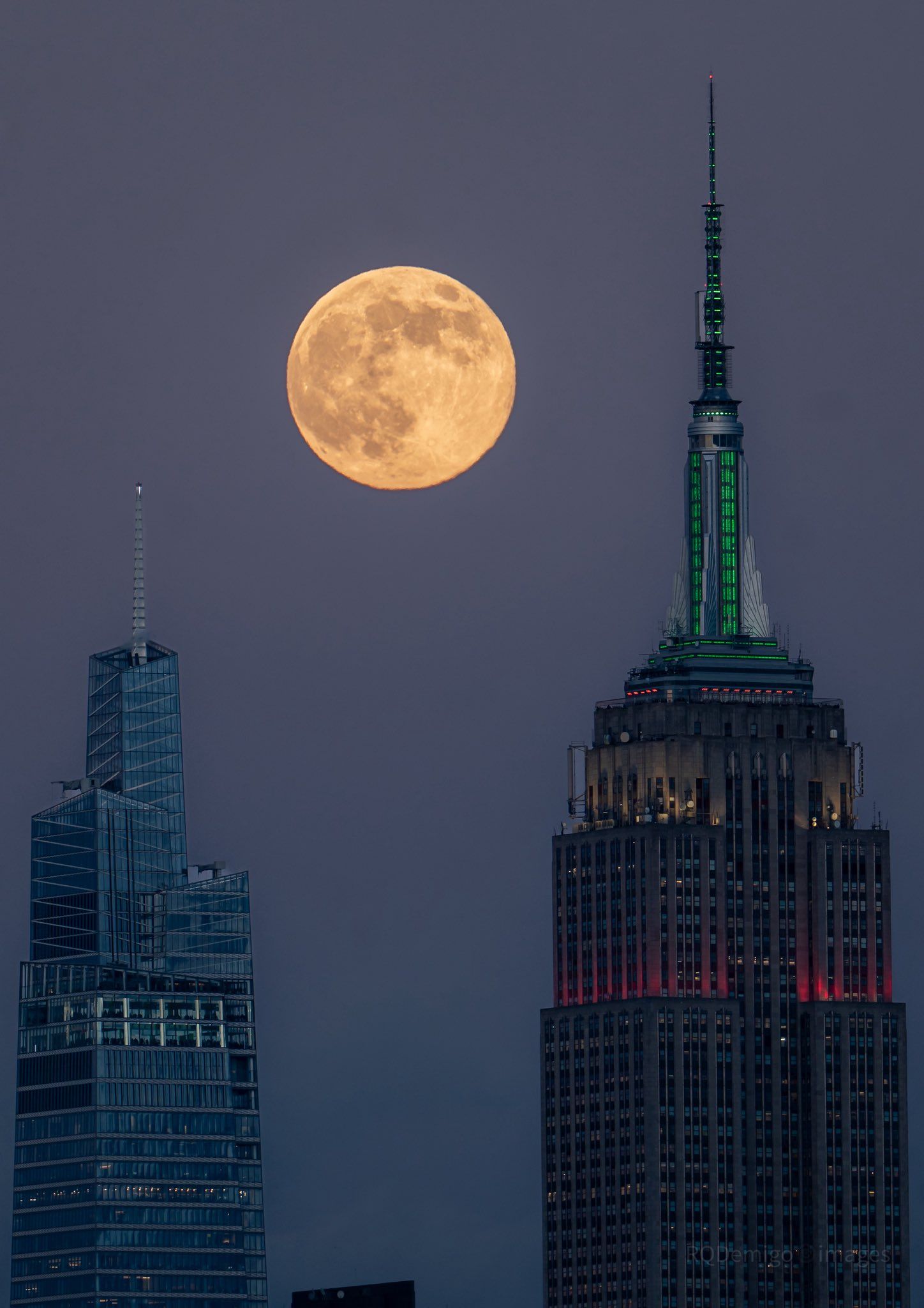 Супермісяць на фоні Емпайр-Стейт-Білдінг 4 грудня 2025 року / Фото RosalieQD