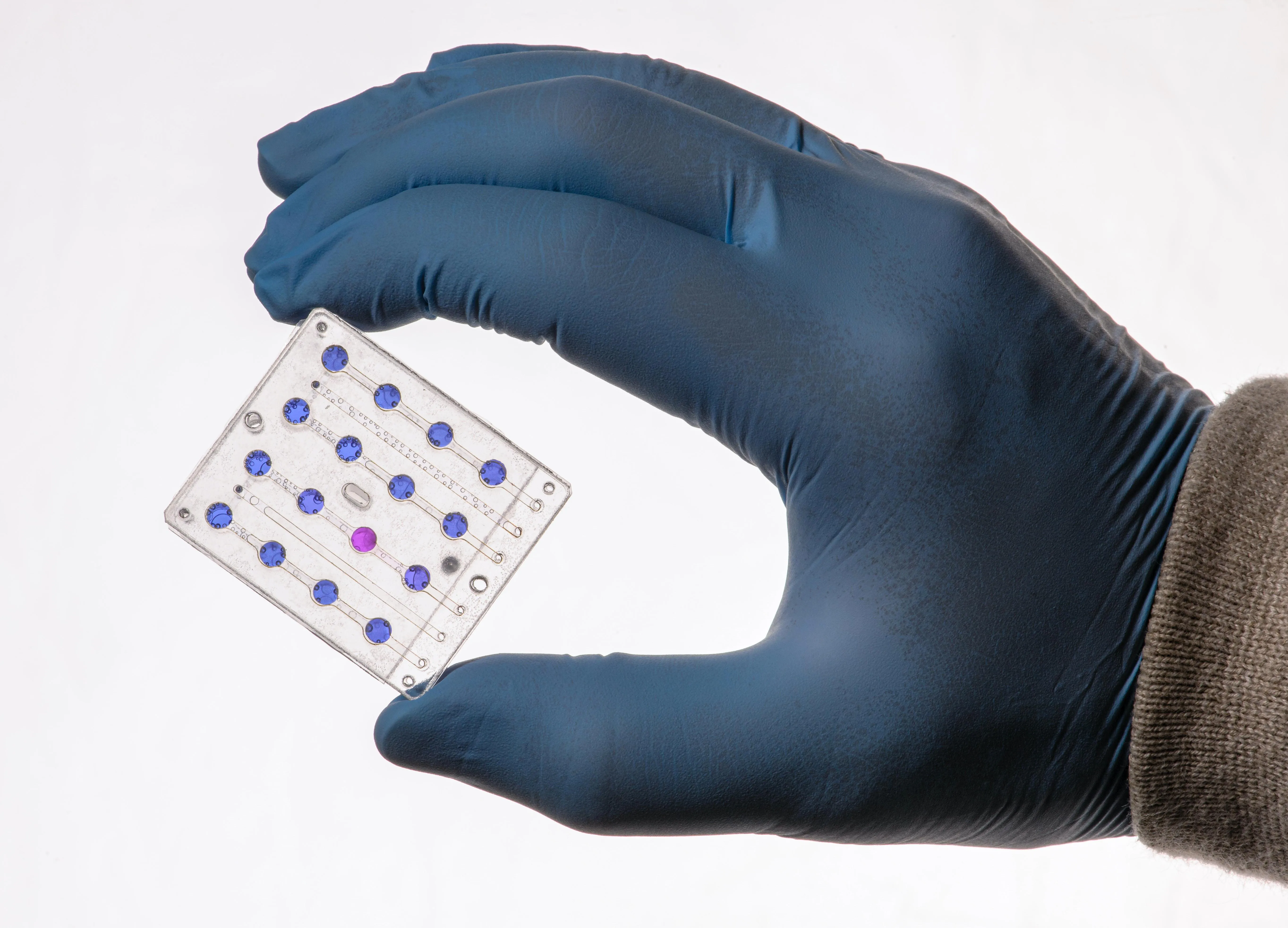 Нижче на фото – одна з мікрофлюїдних карт BioSentinel, яка буде використовуватися для вимірювання впливу радіації на дріжджові клітини, розміщені в крихітних відсіках з рідиною. Мікрофлюїдна система становить барвник, який забезпечує зчитування активності дріжджових клітин, змінюючи колір від синього до рожевого.