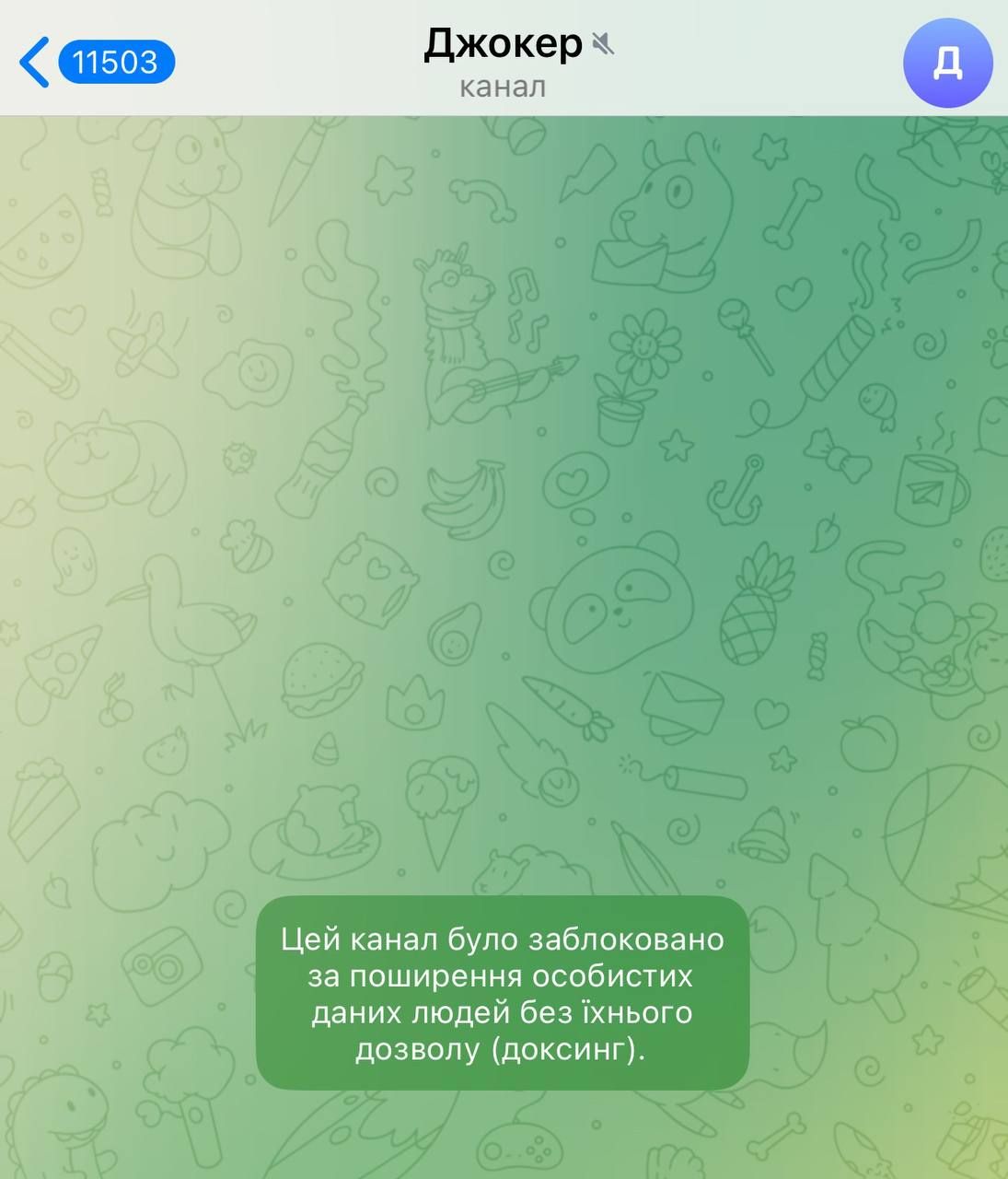 - Український телеграм-канал "Джокер" заблокували за поширення особистих даних без дозволу.