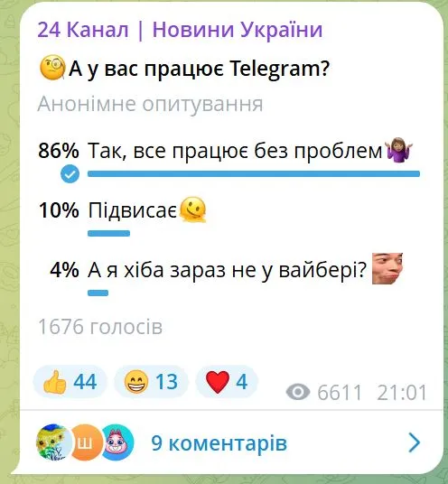 Читачі 24 Каналу також говорять, що робота Telegram увечері 20 жовтня коректна.