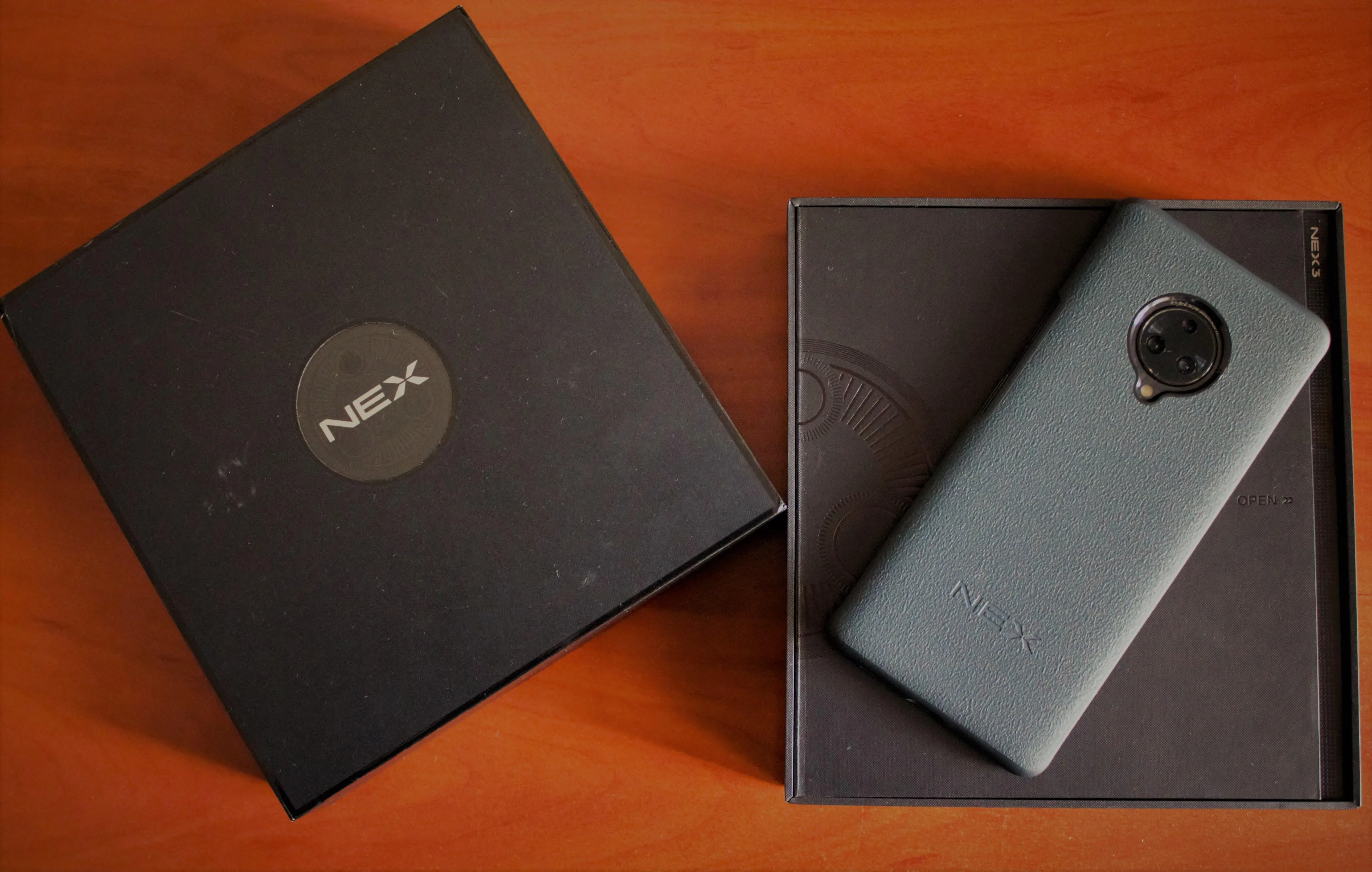 Почати варто з комплектації, адже вигляд лише коробки від смартфона говорить, що перед вами справжній флагман. Зверху вона покрита фактурним візерунком з пластиковою вставкою посередині, на якій нанесене лого смартфона – NEX.