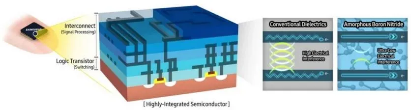 За словами дослідників, аморфний нітрид бору має кращу в своєму класі наднизьку діелектричну проникність 1,78. Крім того, даний матеріал характеризується сильними електричними й механічними властивостями. Він може використовуватися у ролі ізоляції в з'єднаннях для мінімізації електричних перешкод.