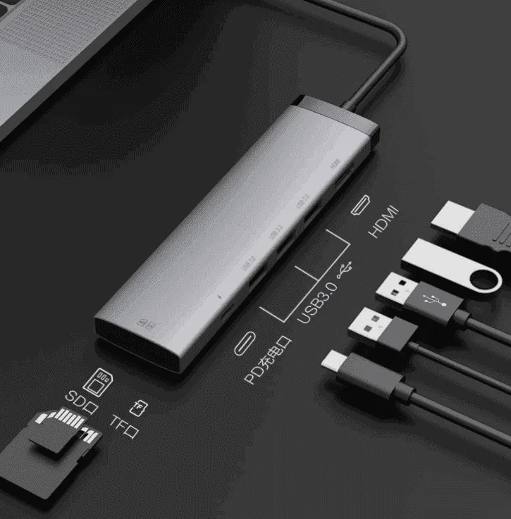 Новинка включає наступні порти: три USB 3.0 Type-A, HDMI, USB Type-C з функцією Power Delivery, а також два слота для карт пам'яті SD і microSD відповідно. Корпус пристрою виготовлений з алюмінію з використанням пластикових елементів. Незважаючи на велику кількість роз'ємів, аксесуар має компактні розміри – 139х36х11,8 міліметра.