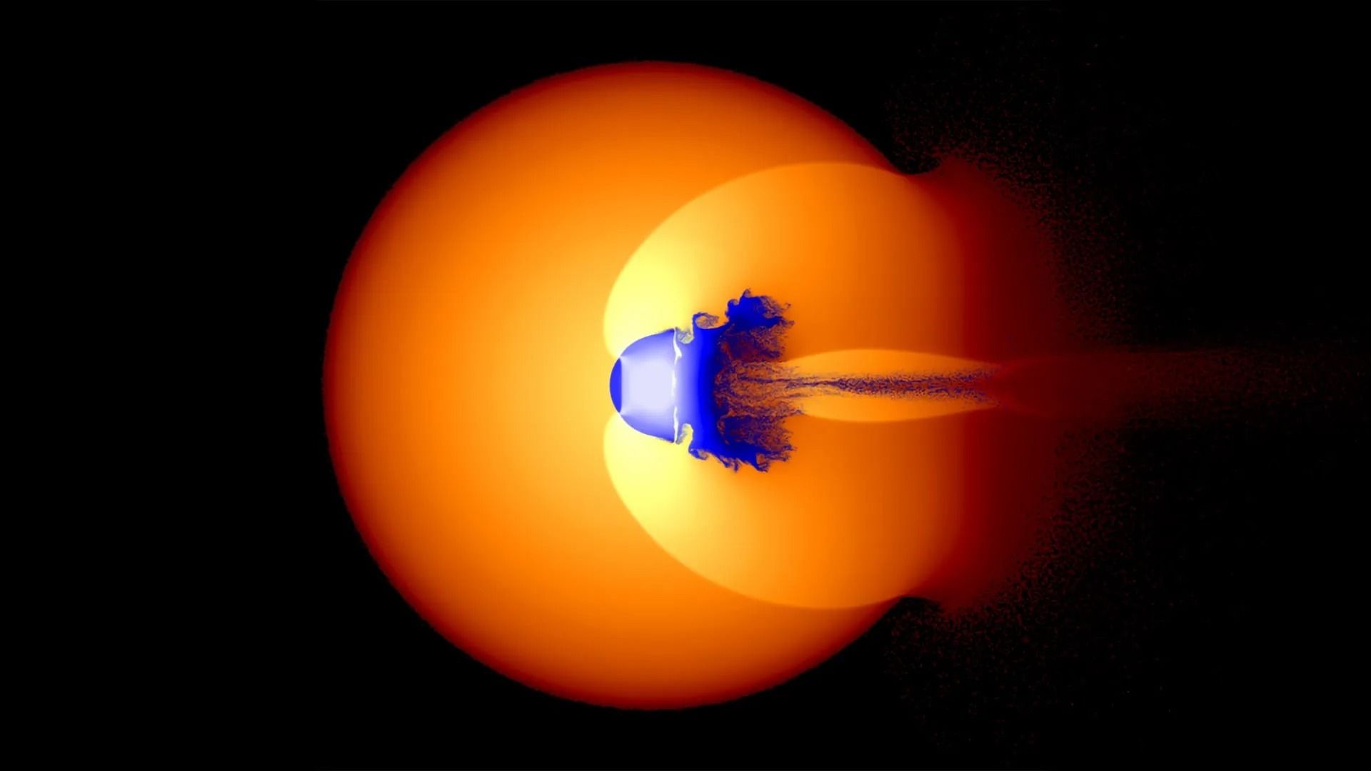 Модель зіткнення планети об ядро Юпітера, викликаючи ударні хвилі та перемішування / Фото Томас Санднес