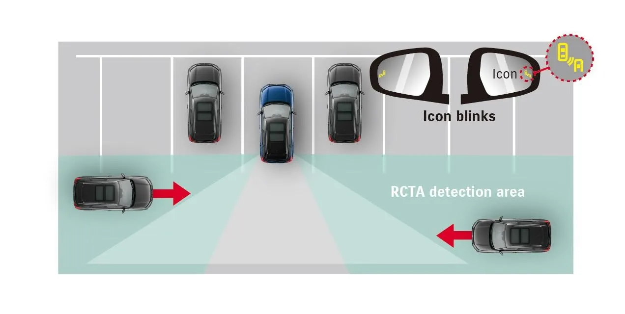 - Blind Spot Monitoring – моніторинг сліпих зон. Повідомляє водія про перешкоду збоку й позаду машини, яку він не бачить у жодне дзеркало заднього виду;