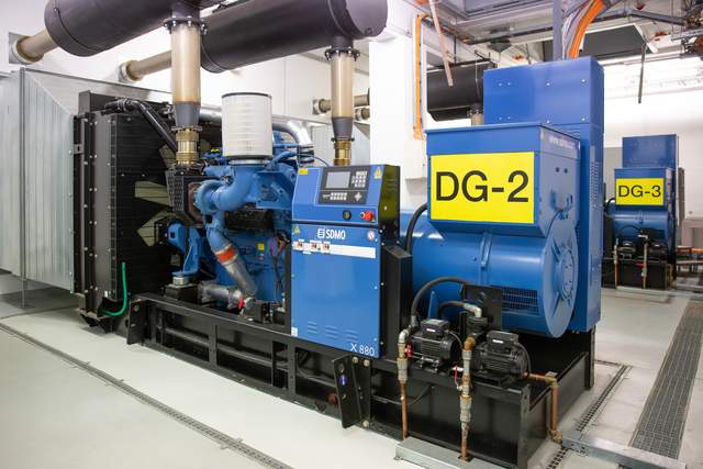 Генератори (3х0,88 МВт), які працюють на дизельному пальному облаштовані у спеціальному приміщенні, яке має автоматизовану систему люків, що слугують протипожежною системою за принципом вакууму. Водночас в підлогу вмонтована спеціальна струна, яка реагує у випадку протікання пального. В такому випадку на системах адміністрування вказується сектор та конкретне місце протікання, що дозволяє швидко зреагувати на інцидент.