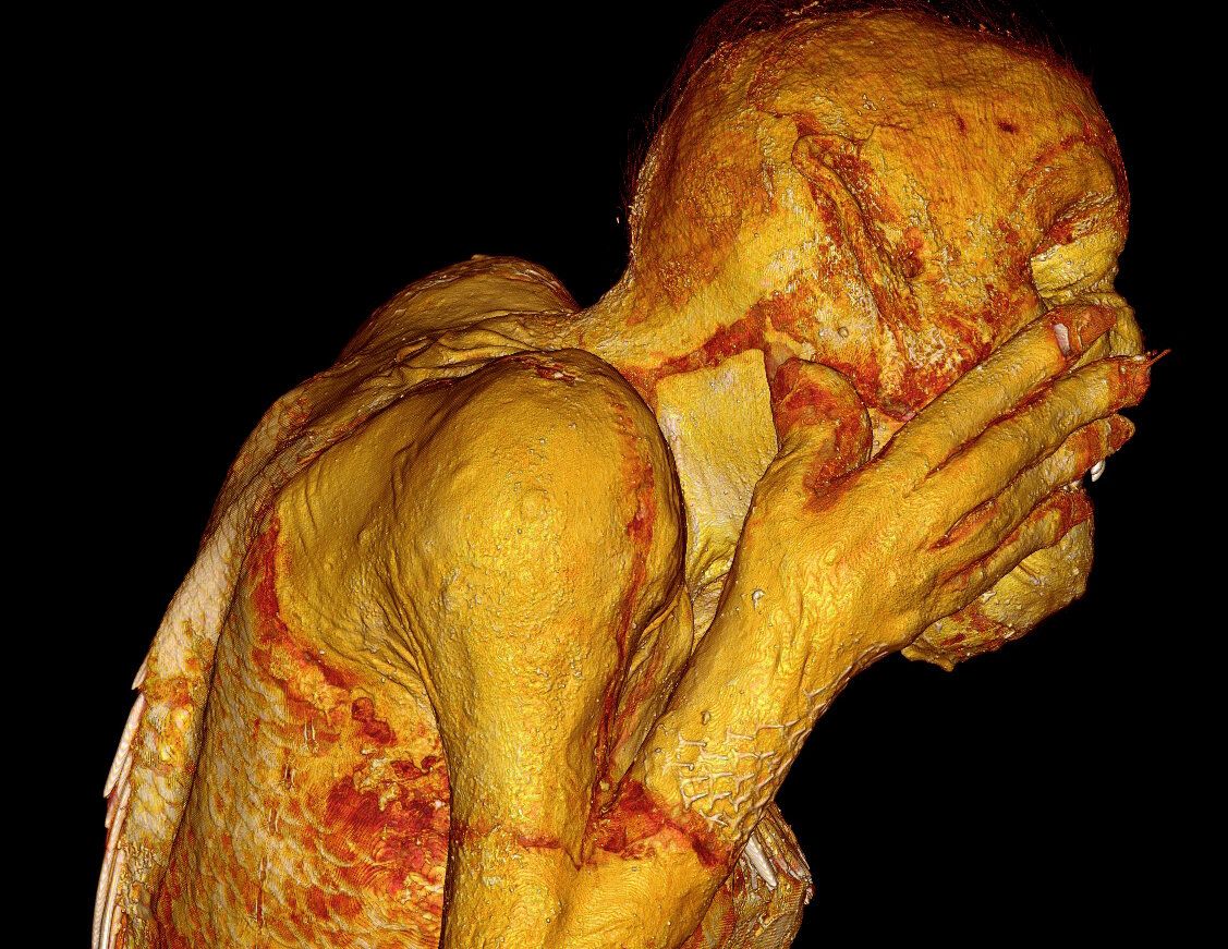 Нижня частина опудала була зроблена з риб'ячого хвоста. Радіовуглецевий аналіз показав, що мумія була створена наприкінці 19 століття.