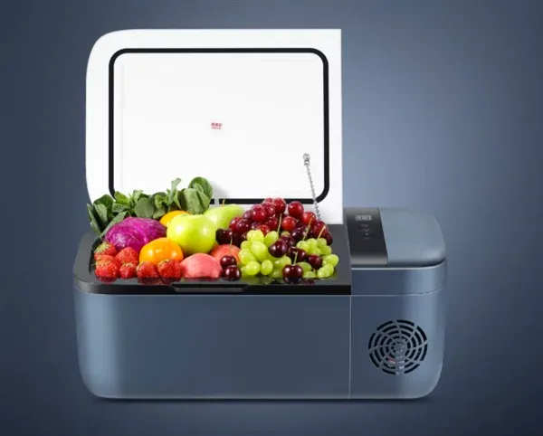 Полезный объем холодильника составляет 12 литров. Крышка гаджета открывается на 90 градусов, обеспечивая комфортный доступ к содержимому.