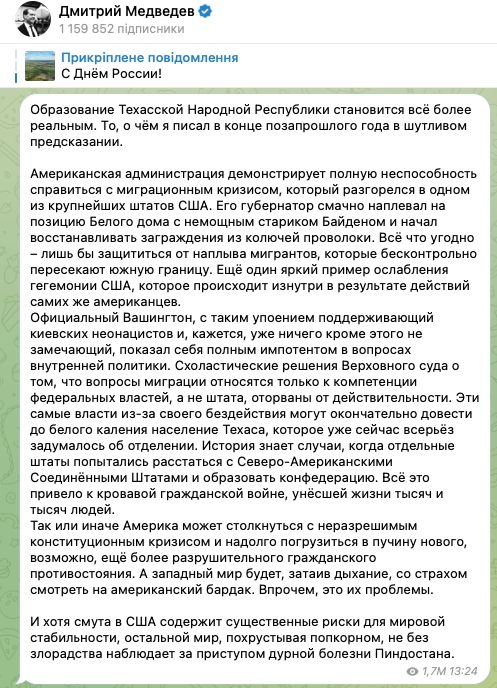 Таке враження, що в українському телеграмі події в Техасі наробили більше шуму, ніж у самому Техасі,