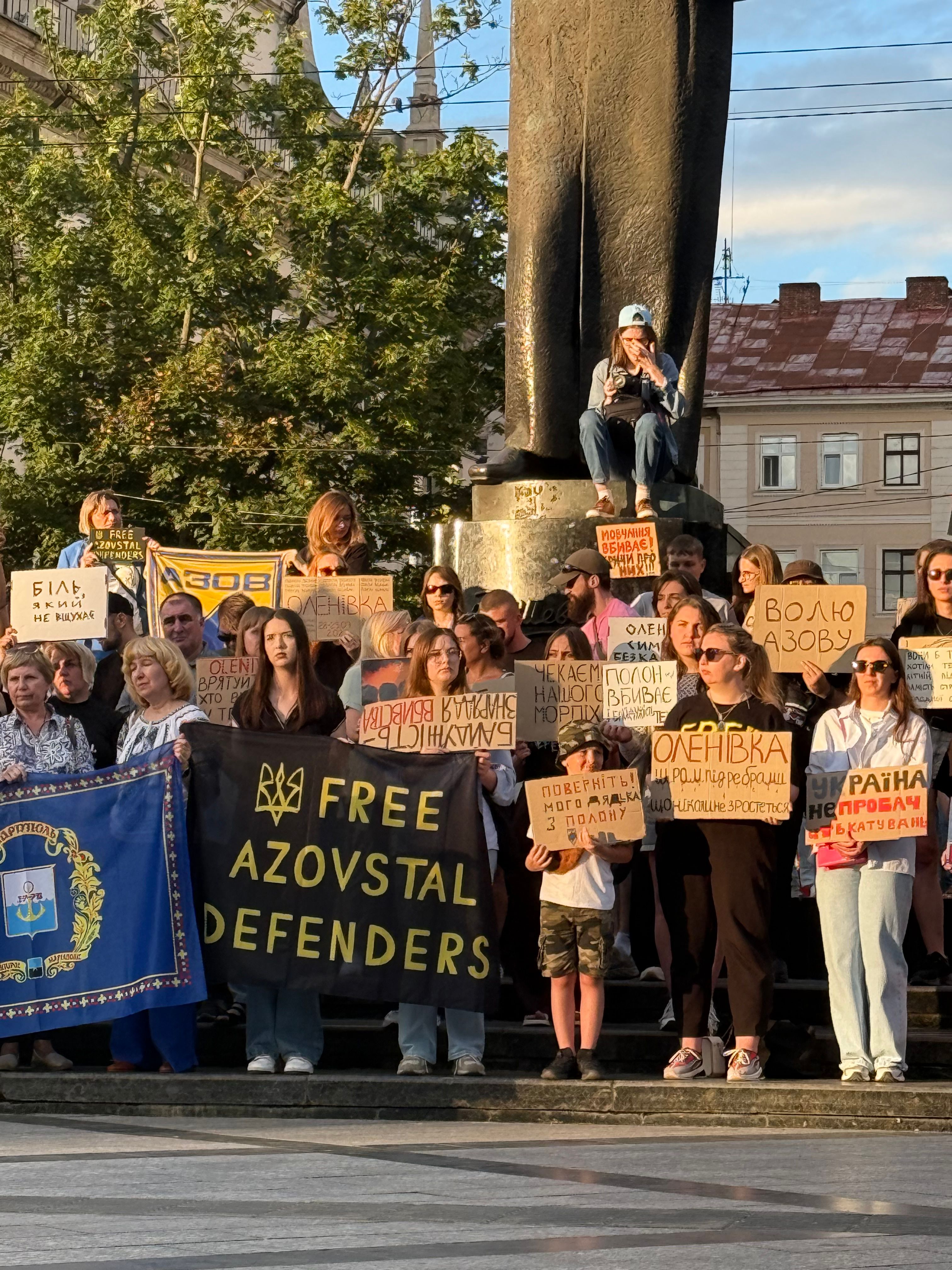 У Львові о 20:00 на площі перед пам'ятником Тарасові Шевченку розпочалася акція в пам'ять про загиблих в Оленівці, а також на підтримку військовополонених, які наразі перебувають у ворожій неволі.