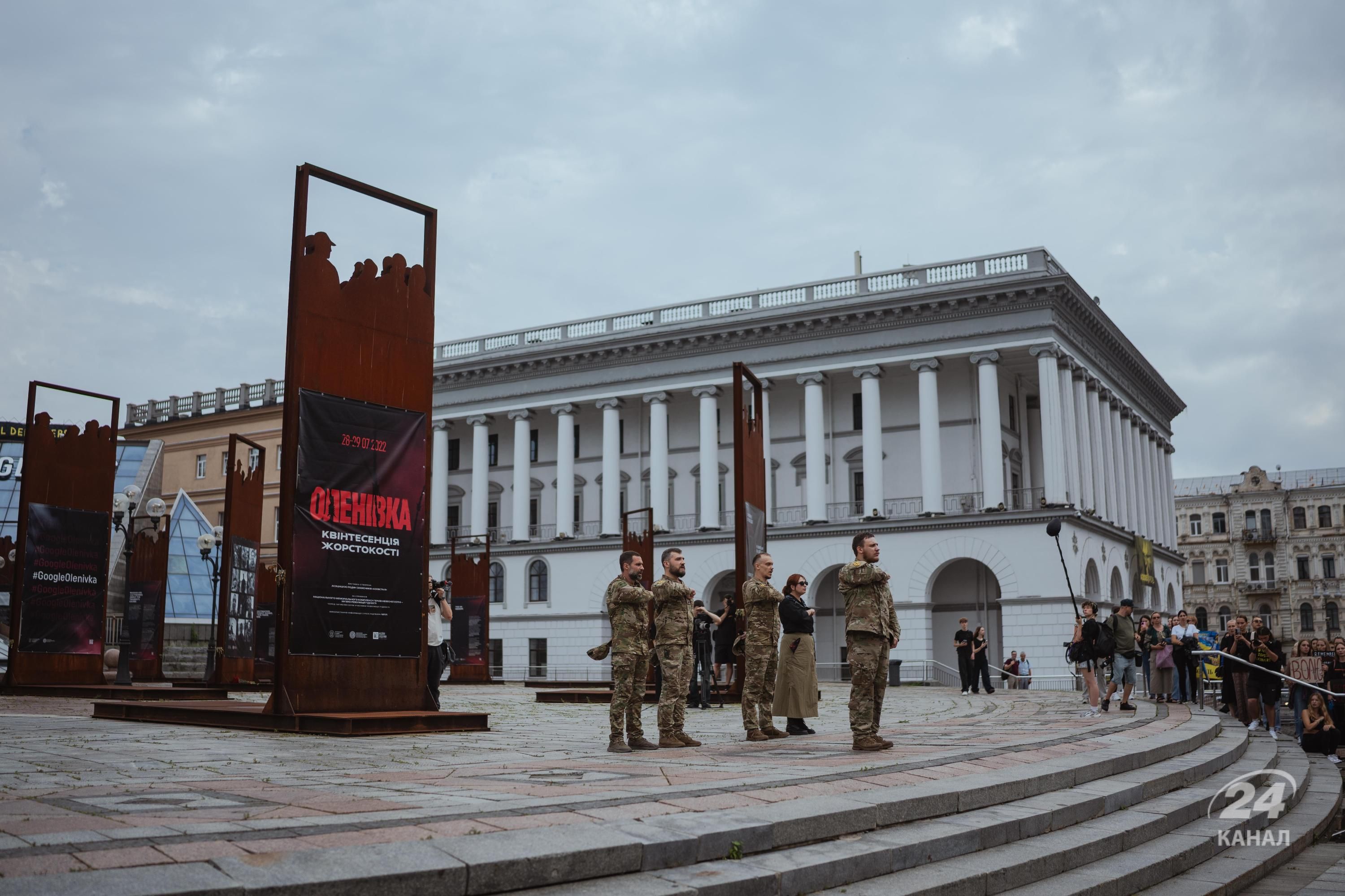 Крім того, на Майдані також триває виставка "Оленівка. Квінтесенція жорстокості", створена Асоціацією родин захисників "Азовсталі" у співпраці з Національним меморіальним комплексом Героїв Небесної Сотні – Музеєм Революції Гідності.